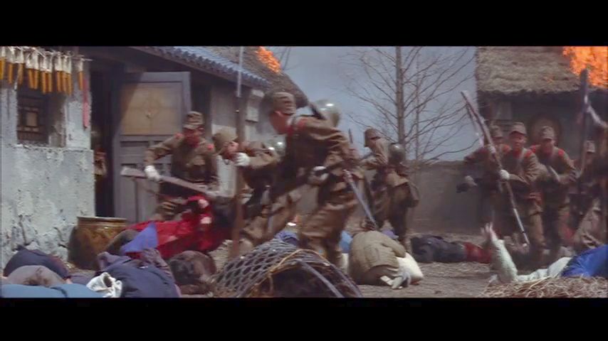 昔の中国の満州に日本軍が進出して、村を襲うシーンです。