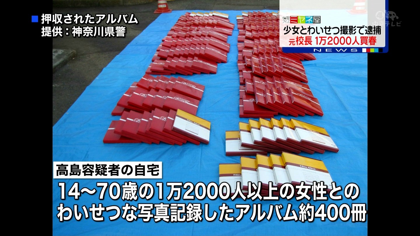 アルバムは1 ページにつき写真が6枚。余白には女性ごとに1番から1万2660番までの番号を振り、それぞれの名前、年齢などを綿密に記録していた。写真は1人1枚と は限らず、“お気に入り”とみられる女性の場合は、1人で二十数枚もの写真を何ページにもわたって貼る気合の入れよう。写真総数は約15万枚にも達し、捜 査員も開いた口がふさがらなかったという。