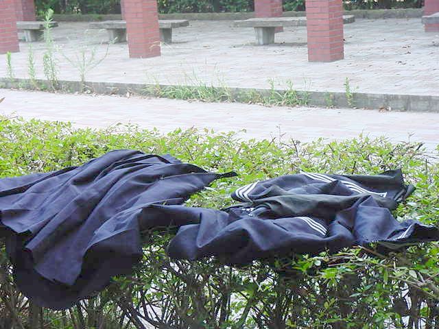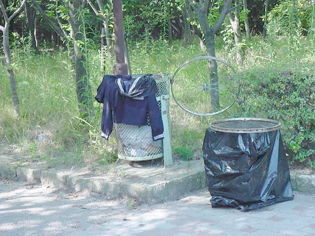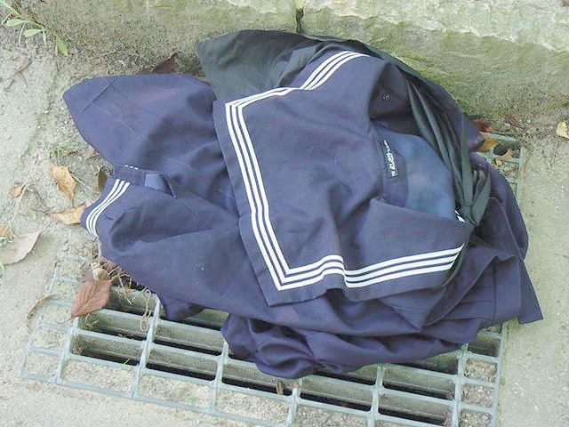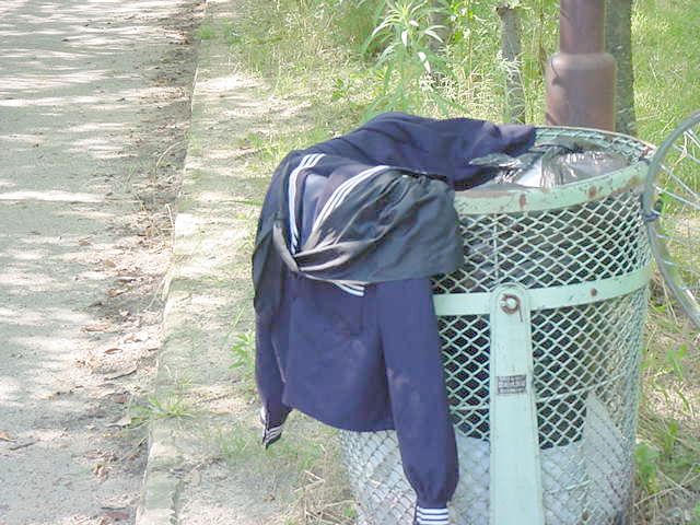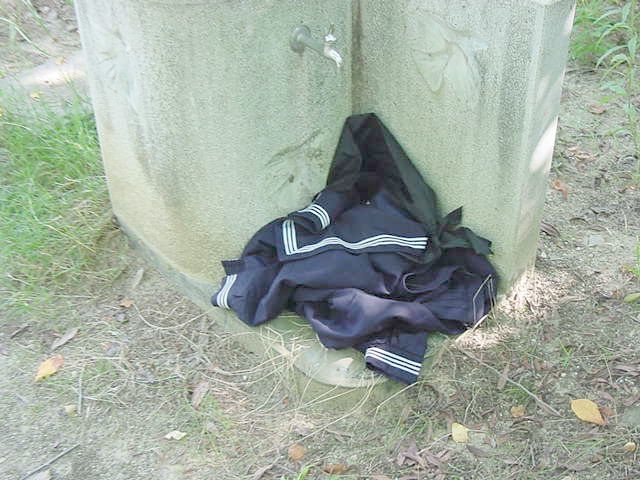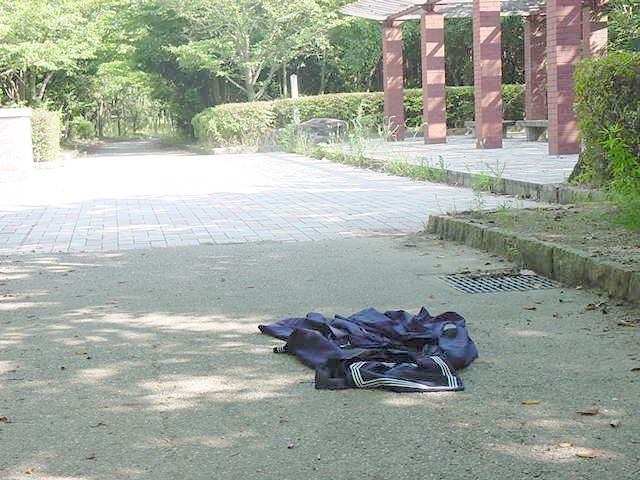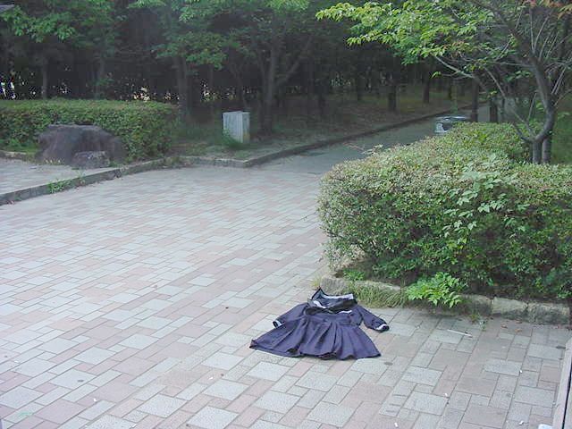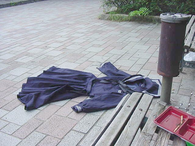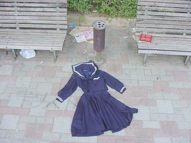 早朝の公園にセーラー服を放置してみました。異様な感じです。