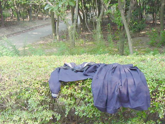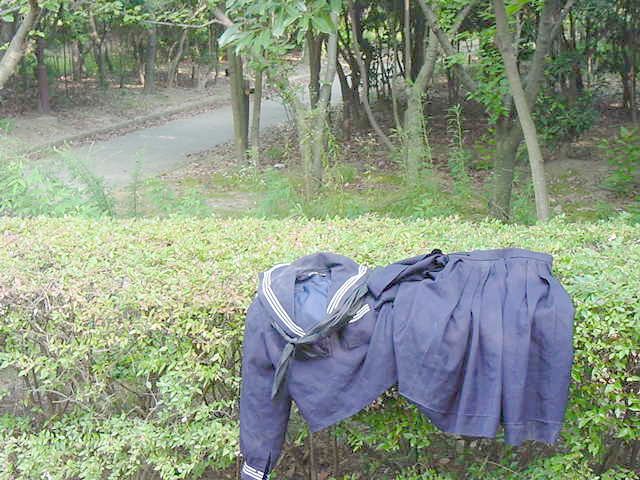 早朝の公園にセーラー服を放置してみました。異様な感じです。