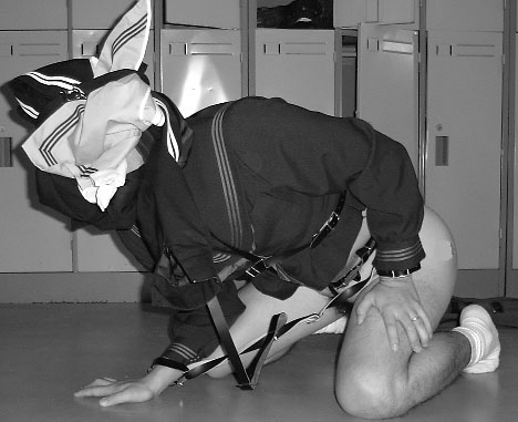 手足の自由を奪われ、セーラー服姿で四つんばいになってる変態さんの画像に興奮しました。