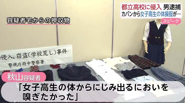 東京・府中市の高校に侵入し、女子高校生の体操服を盗んだとして28歳のプログラマーの男が逮捕・送検されました。