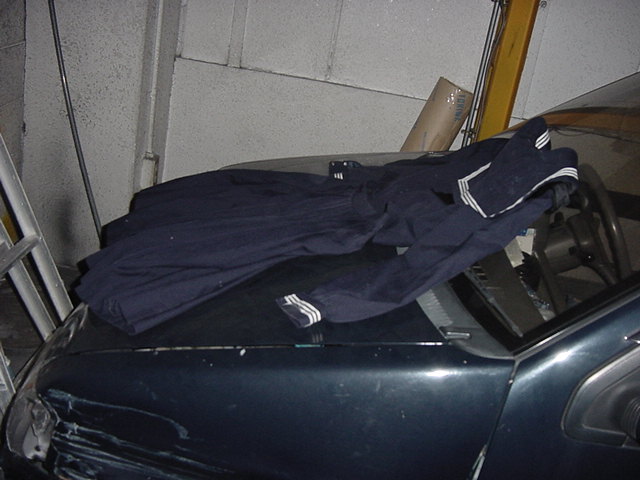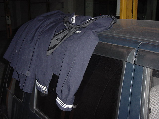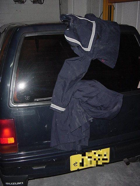 クルマにセーラー服を放置