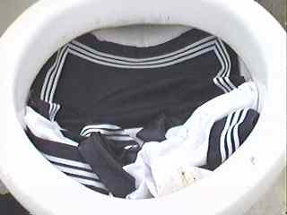 というわけで、なんとか捨てられたセーラー服を拾えないものか、と考えますよね。そこで女子生徒が多くいそうな新興住宅地や団地のゴミ捨て場をせめることになります。大きなゴミ捨て場なら衣類は別になっています。ゴミ捨て日の朝・晩にセーラー服や体操服がないかどうかごそごそ探してみます。これがなかなかないんだよなぁ(笑)。汚いパンツなら結構落ちてるんだけど(–;)。最近は鬼畜系の本の影響か、ホームレスの増加からか結構あさってる奴多いみたい(笑)。先客がいたりします。やはり色っぽい女もののものとか、パンツ・ブラジャーなどが目当てのようです。そんななかでやはりセーラー服やブルマはなかなかないですね。