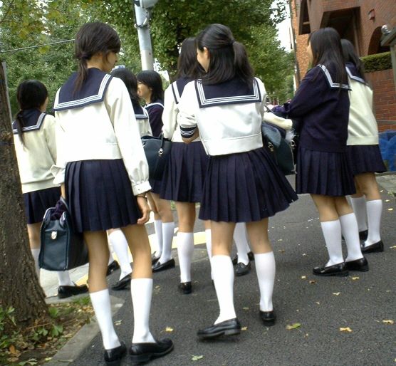 女子校(中学と高校があって)で、白い靴下で、黒のローファーが大好きです。