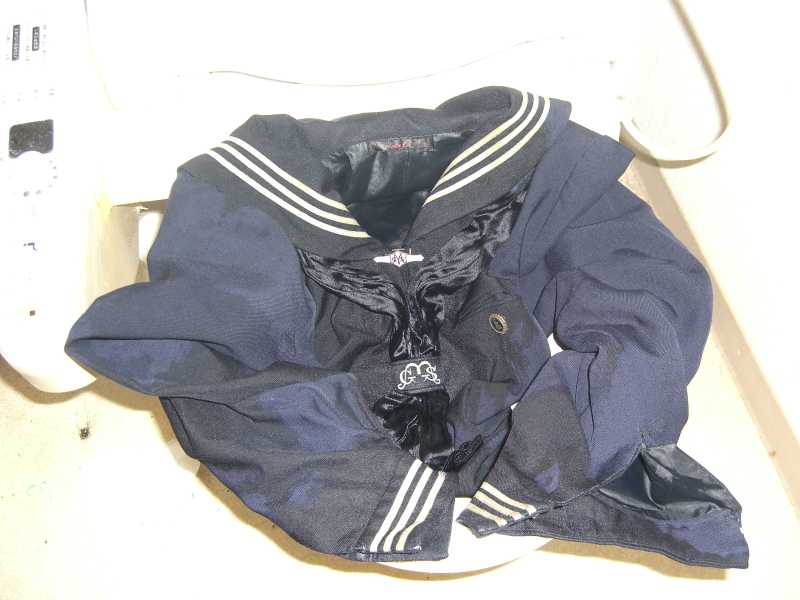 校章から察するに、20年以上前のもののようです。でも、制服デザインは変わらないので、お下がりしてもらえれば、また学校へ戻ることもできたはずです。この制服一式はこの後どうなったのでしょうか。可哀想で堪りません。
